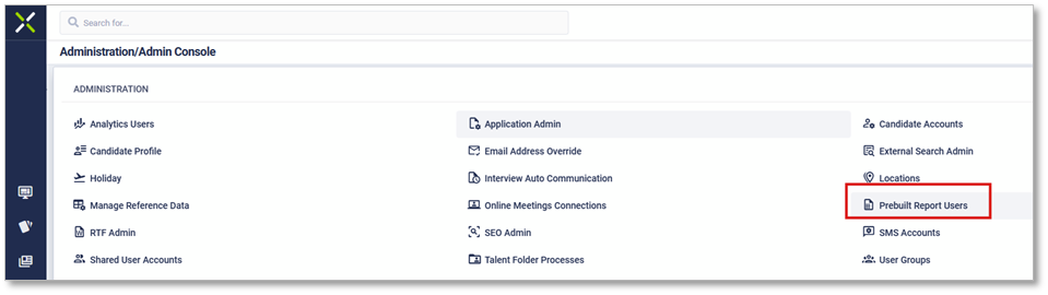 Go to Administration --> Admin Console --> Prebuilt Report users.
