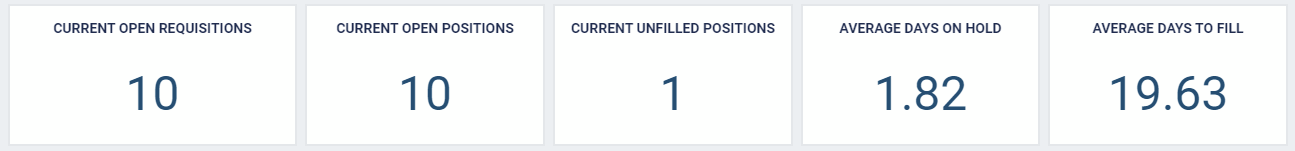 - Average days to fill - This is calculated as sum of time to fill for all requisitions closed within the date range divided by the total number of requisitions closed within the date range.