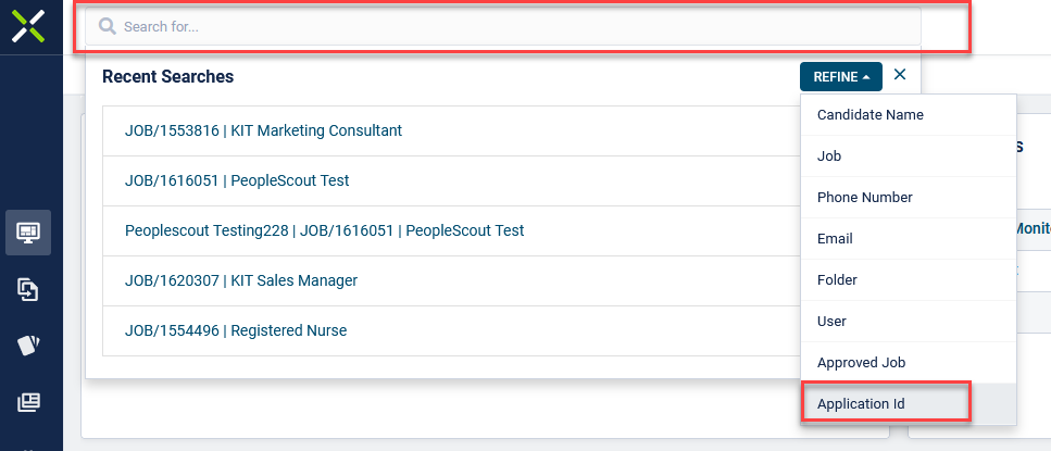 - Ability to search for candidates via quick search by their application ID